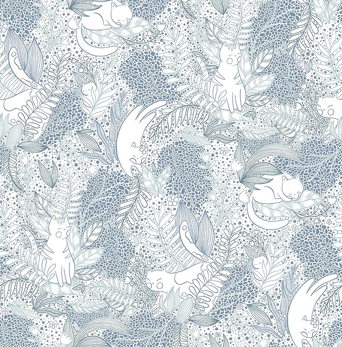Botanical Blue Gato Garden Novelty Peel & Stick Wallpaper